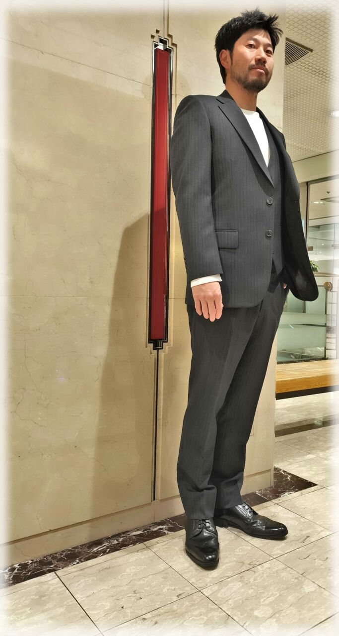 2427 落ち着いたチャコールグレーストライプ D.K様 40代 男性 オーダースーツSADA 金沢香林坊店 投稿日 2026年3月2日 NEW! 最終更新日 2024年12月22日 購入日2024年6月11日 シングルブレステッド2ツ釦3ツ揃 生地素材 シーズン秋冬 生地の色チャコールグレー 生地の柄ストライプ 生地番号7-9523 裏地 チャコールグレー ボタン チャコールグレー オプションその他 スタイリッシュな8.5ハイゴージノッチドラペル 担当スタイリスト 相沢