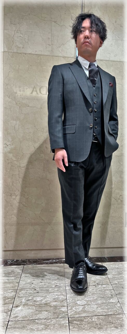 2428 イタリア・マルラーネ モダンなグリーングレンチェック H.Y様 30代 男性 オーダースーツSADA 金沢香林坊店 投稿日 2026年3月3日 NEW! 最終更新日 2024年12月22日 購入日2024年11月17日 シングルブレステッド2ツ釦3ツ揃え 生地素材 シーズン秋冬 生地の色ダークグリーン 生地の柄グレンチェック 生地番号7-5868 裏地 ボルドーリザードキュプラ ボタン ウイスキーブラウンサンダー オプションその他 クラシックな8.5レギュラーゴージノッチドラペル 当然サイドヴェンツ オーダー感あるピックステッチ サージョンズカフス ボルドーリザードチーフ仕立て 流行の2フォワードディーププリーツトラウザーズ 当然サイドシームポケット ピスポケットレス 担当スタイリスト 重田将秀