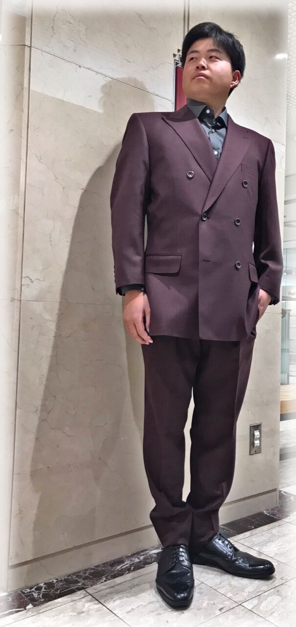 2451 ラグジュアリー感あるボルドー R.T様 20代 男性 オーダースーツSADA 金沢香林坊店 投稿日 2026年3月24日 NEW! 最終更新日 2024年12月31日 購入日2024年12月1日 ダブルブレステッド6ツ釦 生地素材 シーズン秋冬 生地の色ボルドー 生地の柄ピュア 生地番号7-5576 裏地 シャンパンゴールドペイズリー ボタン ウイスキーブラウンサンダー オプションその他 美しすぎる9.5ハイゴージピークドラペル 当然サイドヴェンツ オーダー感あるピックステッチ 流行の2フォワードディーププリーツトラウザーズ 当然サイドシームポケット ピスポケットレス 担当スタイリスト 相沢
