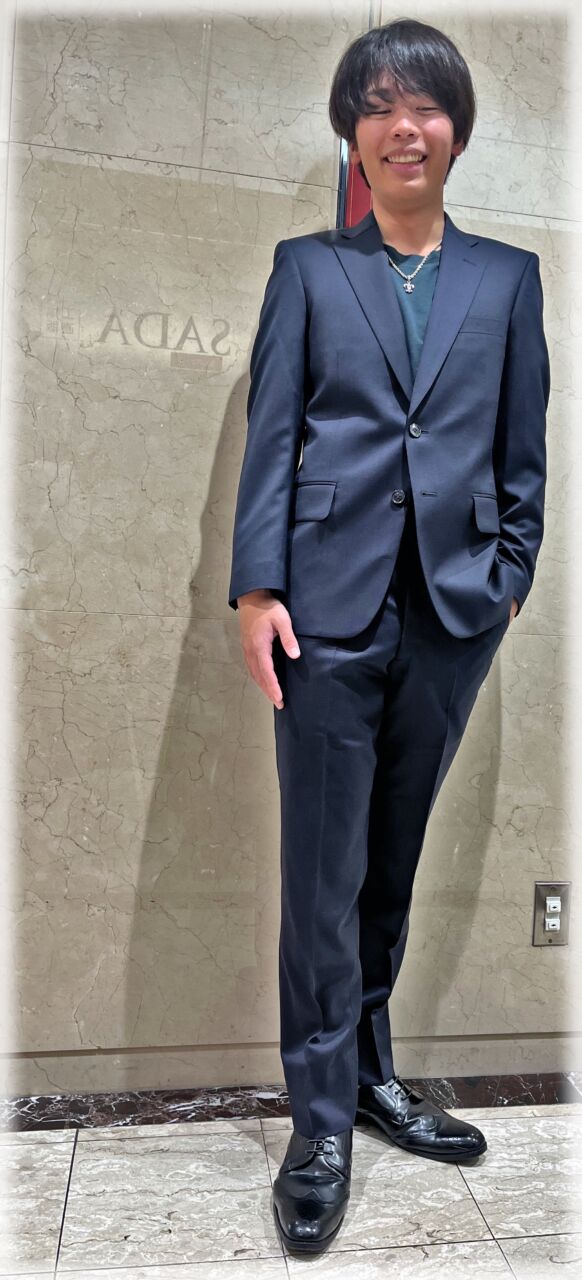 2456 王道のダークネイビー E.K様 20代 男性 オーダースーツSADA 金沢香林坊店 投稿日 2026年3月29日 NEW! 最終更新日 2025年1月3日 購入日2024年12月9日 シングルブレステッド2ツ釦 生地素材 シーズン 3シーズン 生地の色ダークネイビー 生地の柄ピュア 生地番号8-2192 裏地 ミッドナイトブルー ボタン ミッドナイトブルー オプションその他 スタイリッシュな7.5ハイゴージノッチドラペル 担当スタイリスト 重田