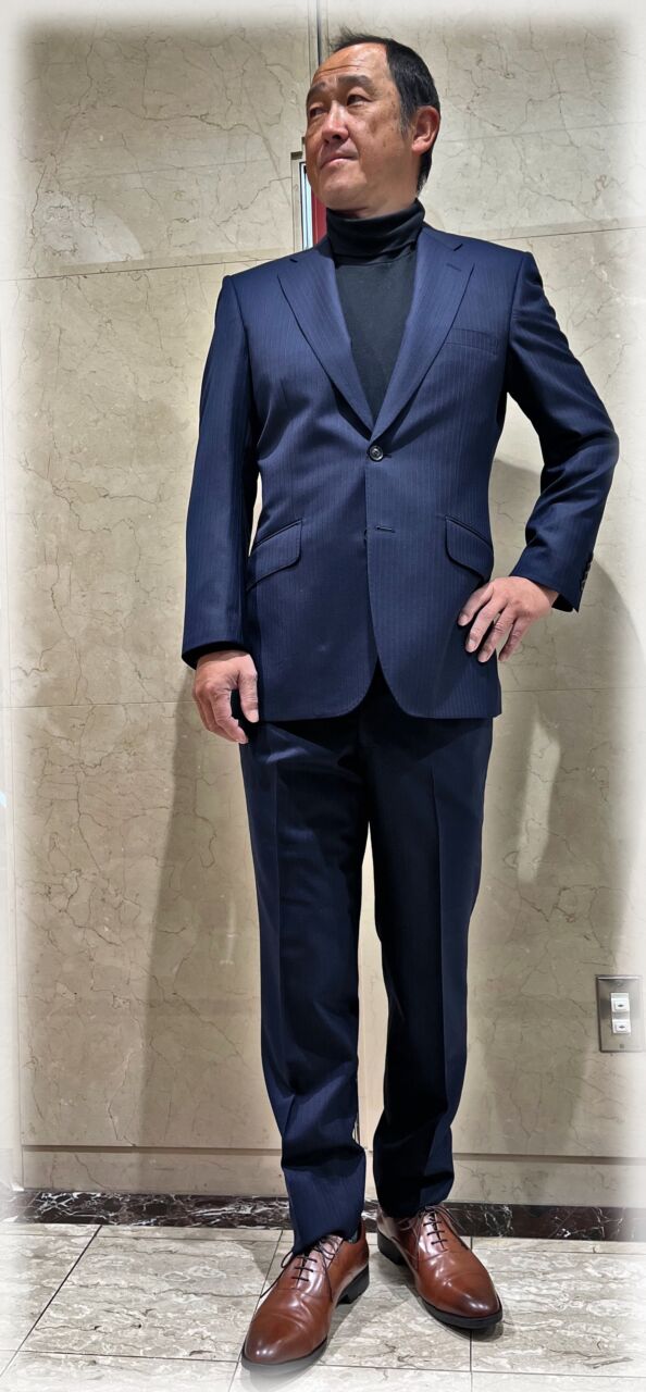2459 定番ネイビーストライプ S.A様 男性 オーダースーツSADA 金沢香林坊店 投稿日 2026年4月1日 NEW! 最終更新日 2025年1月3日 購入日2024年11月30日 シングルブレステッド2ツ釦 生地素材 シーズン秋冬 生地の色ネイビー 生地の柄ストライプ 生地番号7‐5511 裏地 ミッドナイトブルー ボタン チョコレートブラウンマット オプションその他 クラシックな8.5レギュラーゴージノッチドラペル 当然サイドヴェンツ スタイリッシュなスランテッドポケット オーダー感あるピックステッチ 担当スタイリスト 冨