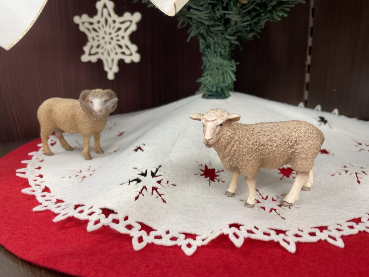 羊がツリーの下で雪が止むのを待っているという裏テーマで飾りましたー!