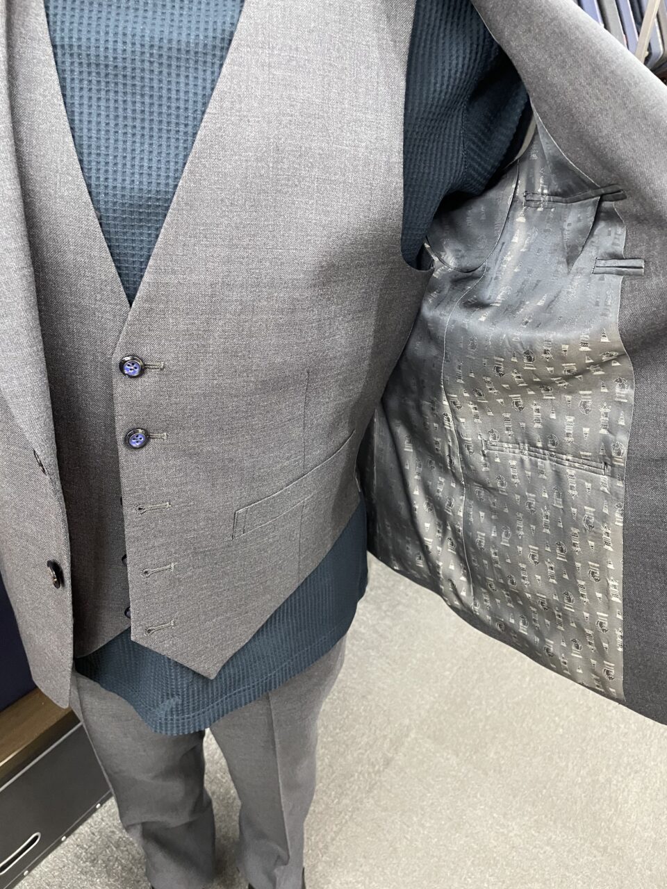 表は端正、裏は遊び心。 オーダースーツSADA 柏店 投稿日 2026年2月11日 NEW! 最終更新日 2026年2月11日 グレー無地 三つ揃え 生地素材 フォルテ(7-6545) ウール100% 秋冬生地 グレー 無地 裏地 キュプラ100% チェス柄シルバー(667) ボタン テーラー釦(K58) オプションその他 タフ仕立て 担当スタイリスト 土肥