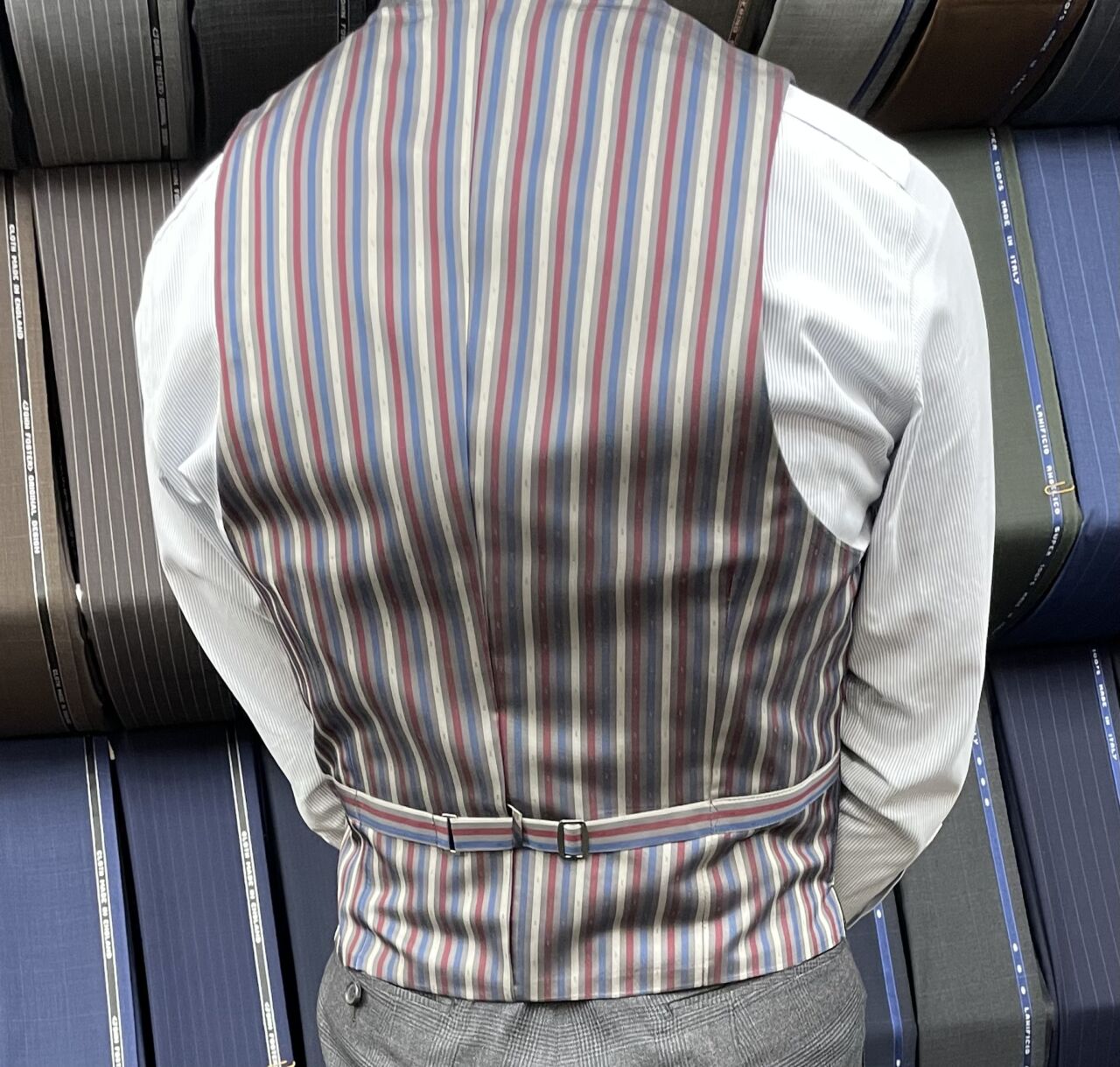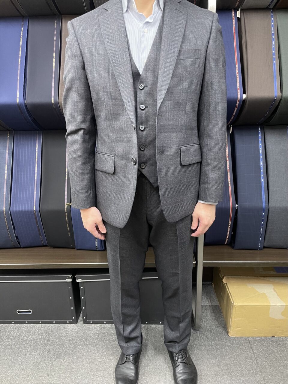 真面目な顔して、裏地で遊ぶ。 オーダースーツSADA 柏店 投稿日 2026年3月30日 NEW! 最終更新日 2026年3月20日 スリーピース 生地素材 フォルテ(7-6549) ウール100% グレーチェック柄 秋冬生地 裏地 キュプラ100%(618) ストライプ柄 ボタン 水牛釦(124) オプションその他 タフ仕立て 担当スタイリスト 土肥