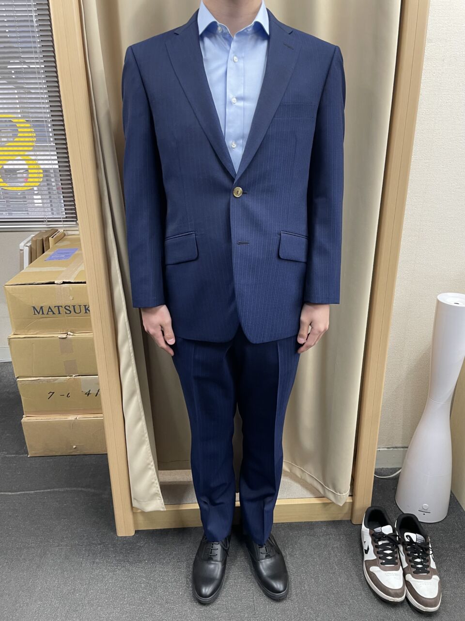季節を越えて着る、ネイビースーツ オーダースーツSADA 柏店 投稿日 2026年4月3日 NEW! 最終更新日 2026年3月20日 シングルスーツ 生地素材 エレガンス(7-9830) ウール100% 秋冬生地 ネイビーストライプ 裏地 キュプラ100% チェス柄 ゴールド ボタン 本水牛(122) 白色 オプションその他 タフ仕立て 担当スタイリスト 加藤