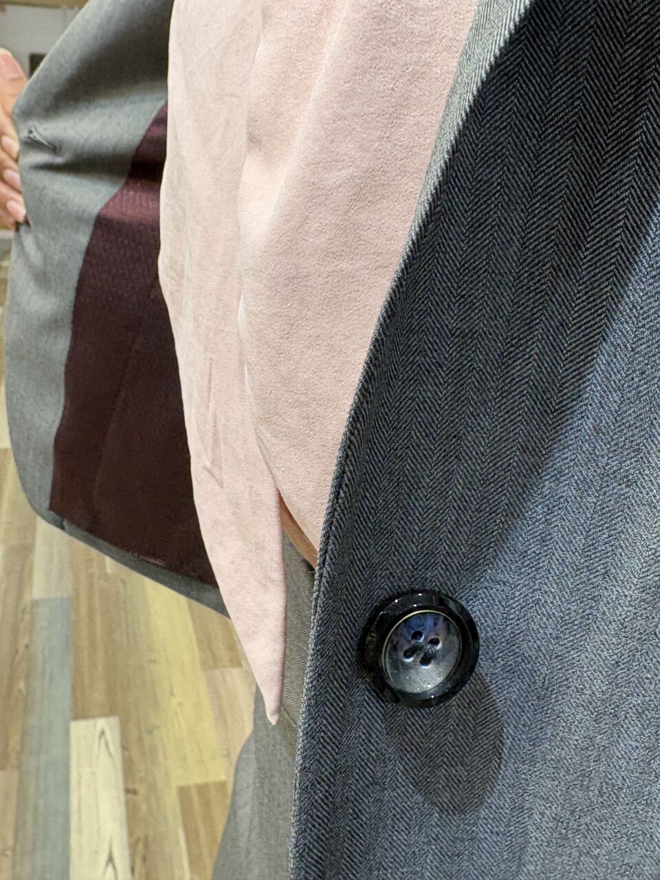 釦はイタリア製のマーブル釦、裏地はドビー織りの光沢ある素材をお選びいただきました。