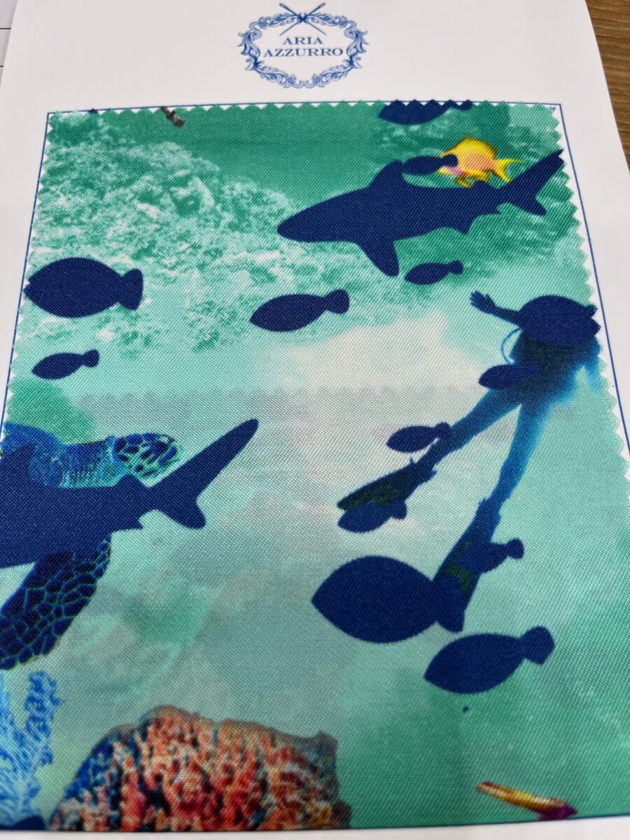 爽やかな青い海に小型のクルーザーが描かれた、いかにも夏らしさを感じられる裏地となっています