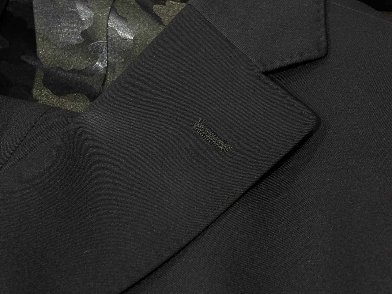 先述した芯地と襟の縁、フロントカットをこちらのステッチで縫い合わせていたのが、良い仕立てのスーツならではと言われる所以となります。