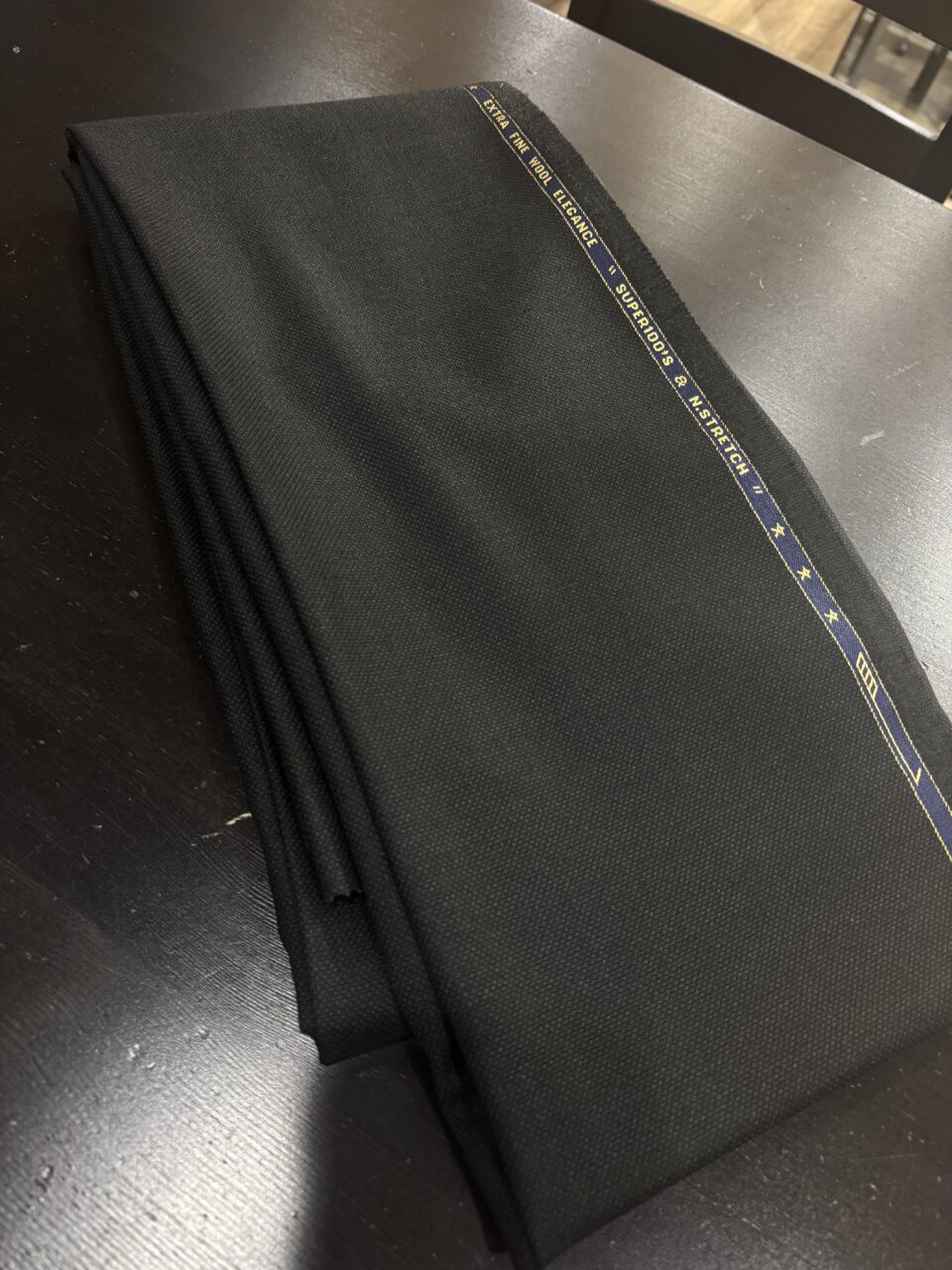 濃紺の中でも特に暗く、生地単体で見ると黒に近い一枚ですが、濃紺らしい上品さに加え、光沢も素晴らしい一着になります。