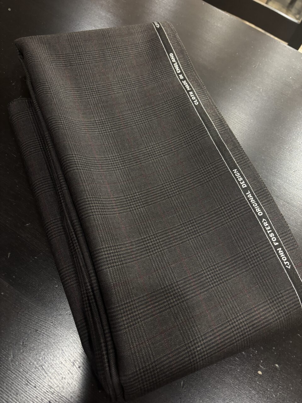 ビジネスでは定番のグレンチェックと秋冬定番のブラウンが合わさった生地です。