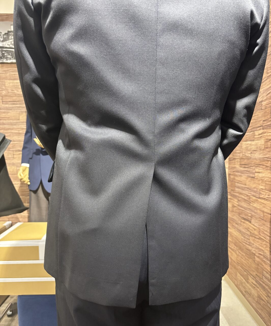 後姿がすっきり見える反面、デメリットとしては体型によっては立っているときにベントが開きやすいことが挙げられます。