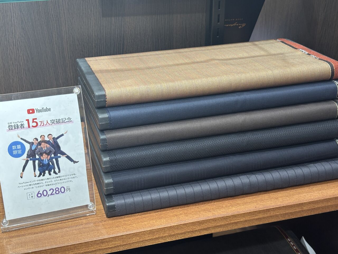 突破記念としてオリジナル生地でのスーツの販売を開始いたします。