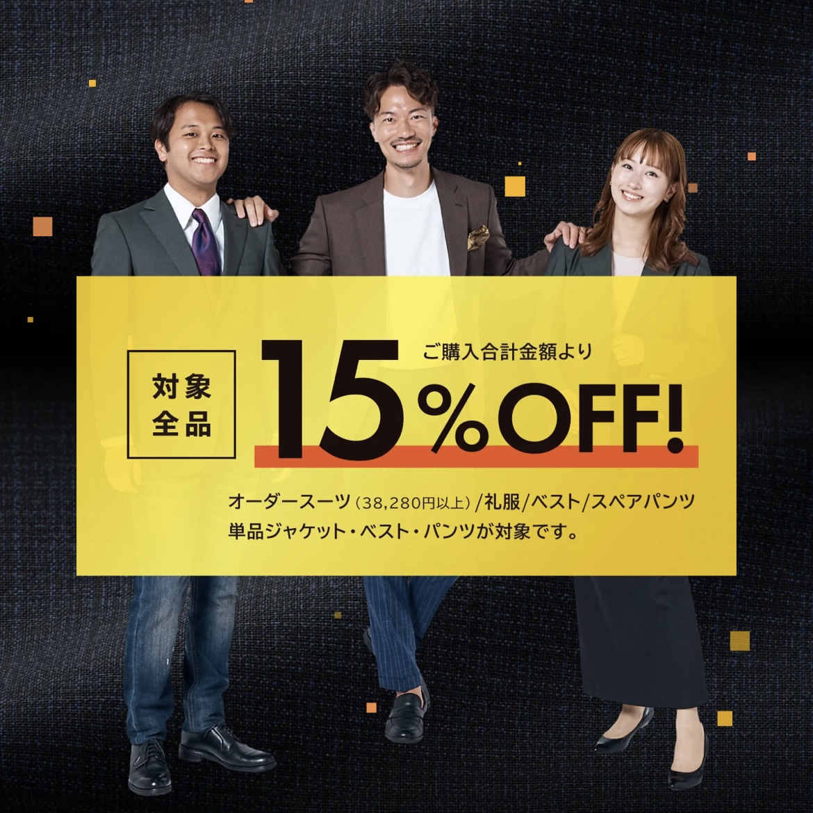 期間中は対象スーツ(34,800+税以上)が15%OFFとなります!!