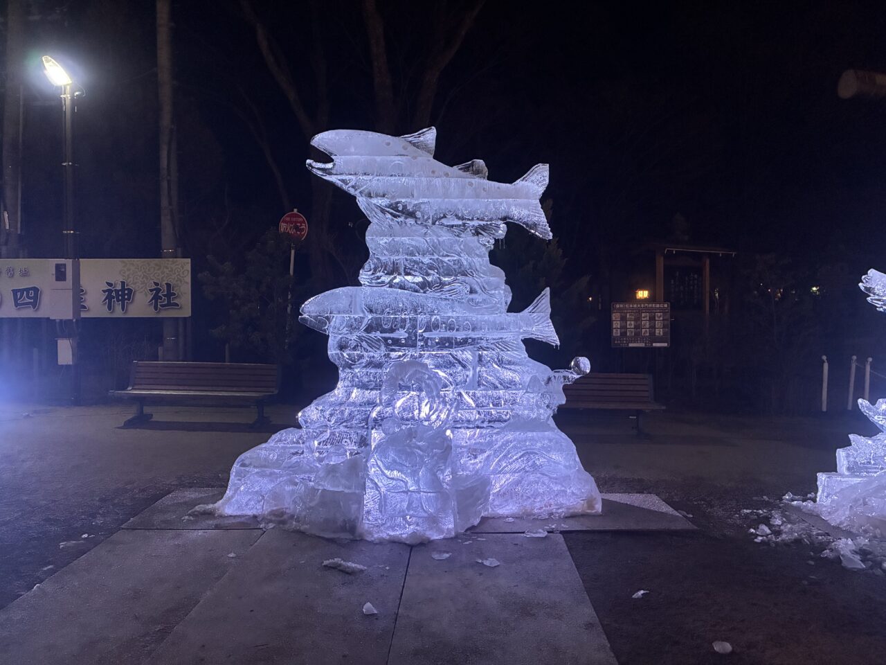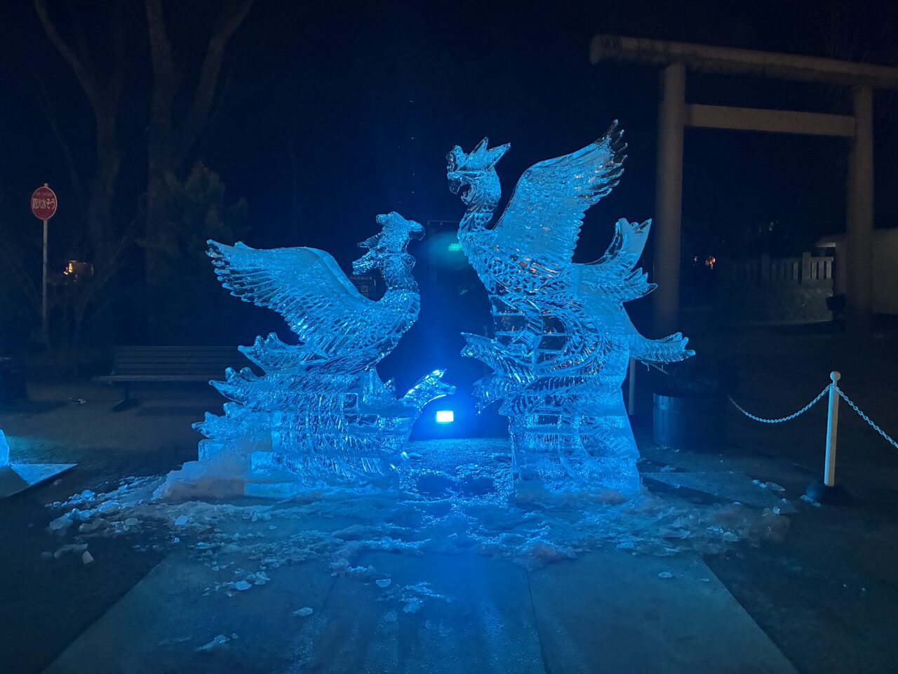 先日、昼間に展示されている氷彫を載せましたが念願だった夜も見に行く事ができました!