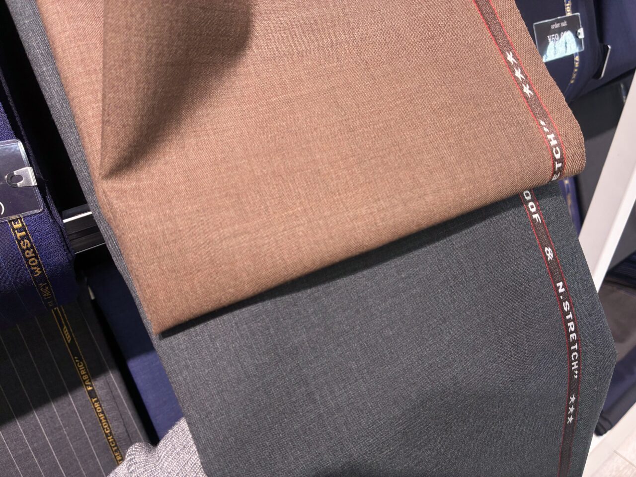特にブラウンとカーキの色味が絶妙なので、映えるスーツをお仕立てしたい方はぜひご来店ください!