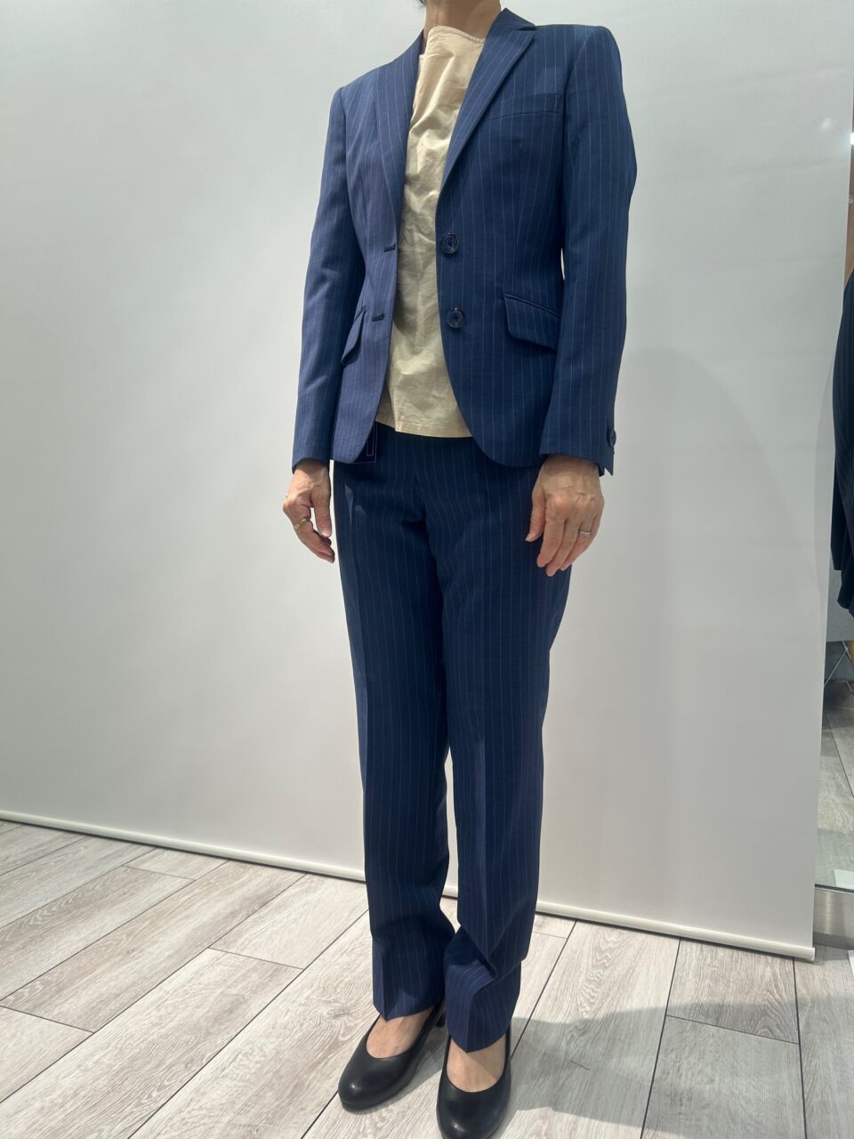 今回は、太めのストライプ柄が綺麗なレディーススーツをお仕立てしました!