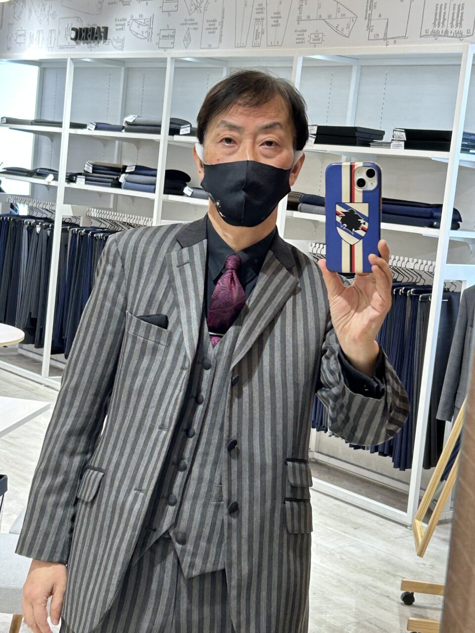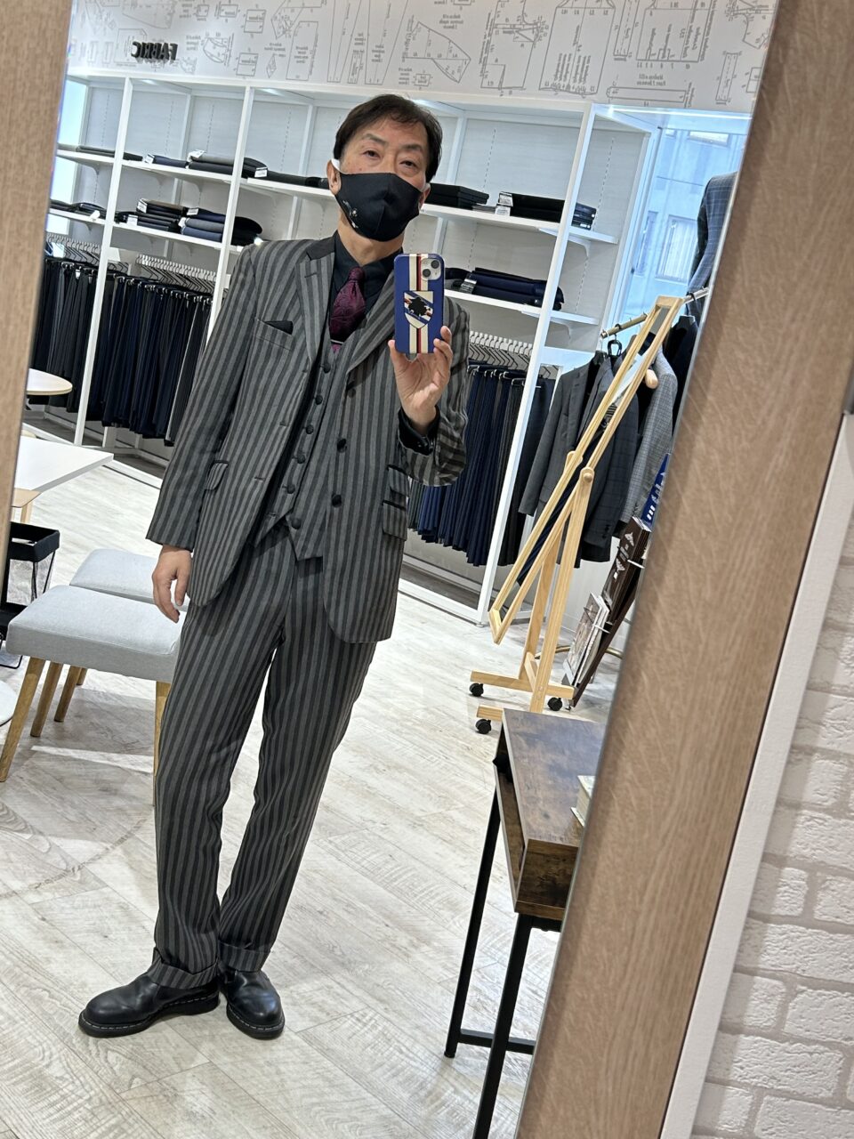 これはモッズスーツですが、黒/グレー基調でコーディネイトしてます。