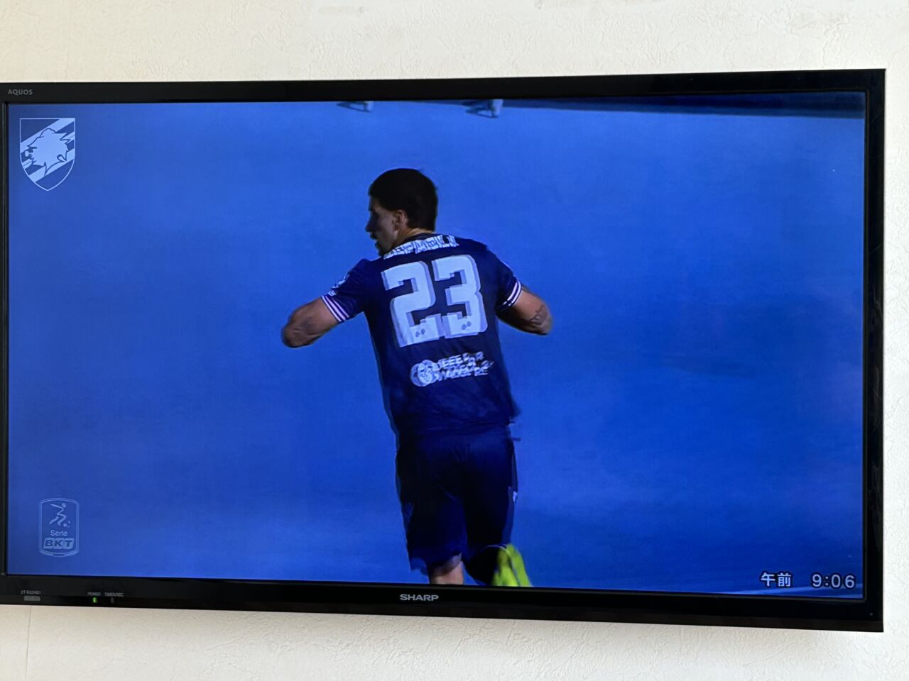 そして、翌朝に日本時間の深夜に開催されていた我らがサンプドリアの試合のハイライト動画を数時間遅れで、部屋のTVのモニター画面でYou Tubeで観戦。