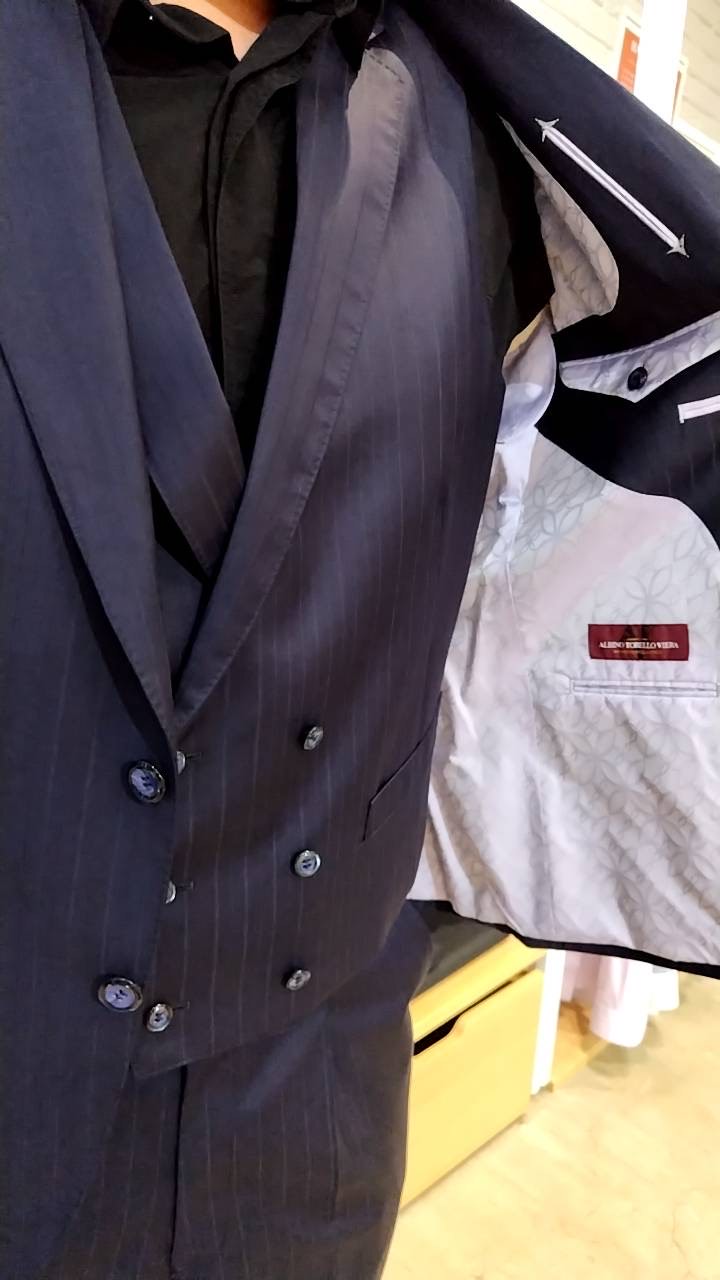ハイグレード仕立て・紺系・イタリア輸入生地(ALBINO TORELLO VIERA社)&四つ葉柄裏地