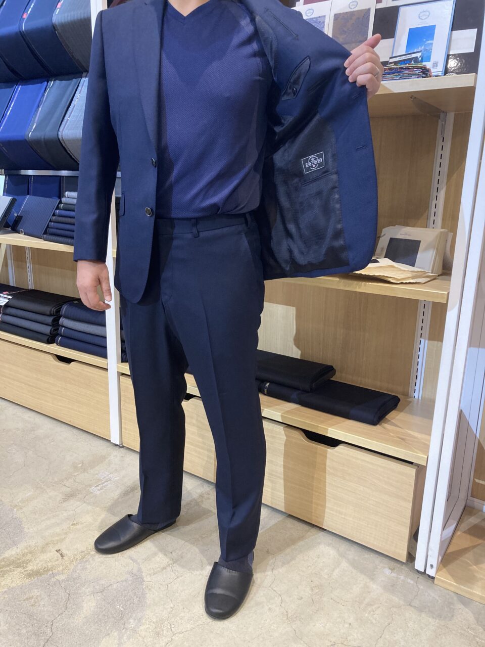 ハイグレード仕立て・紺系・イングランド輸入生地(JOHNFOSTER社)&ドット裏地