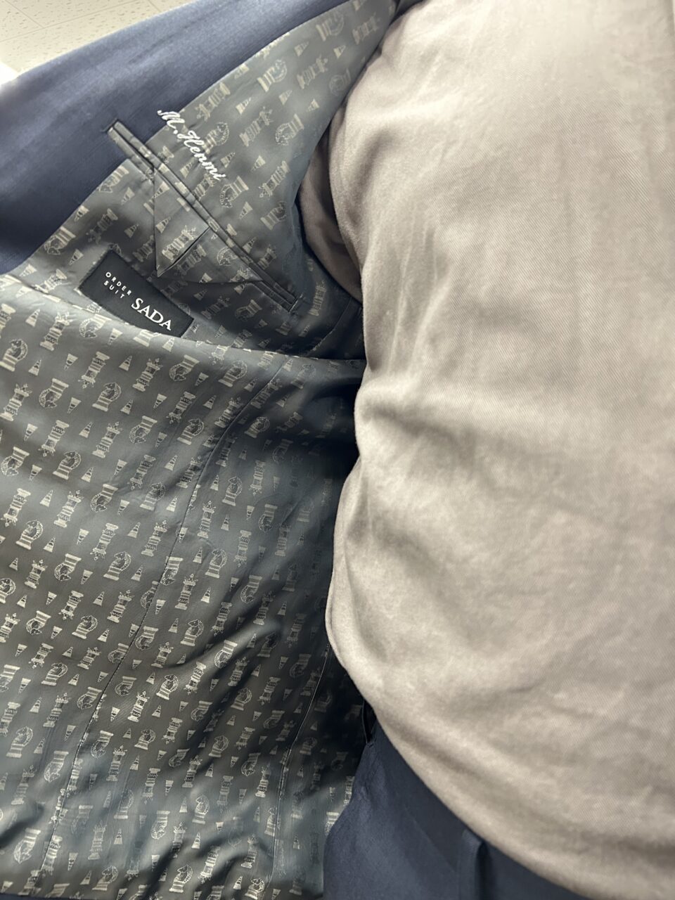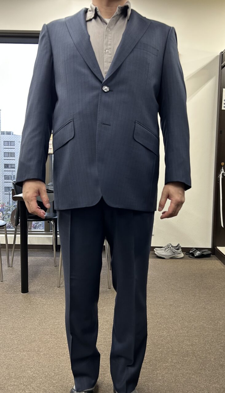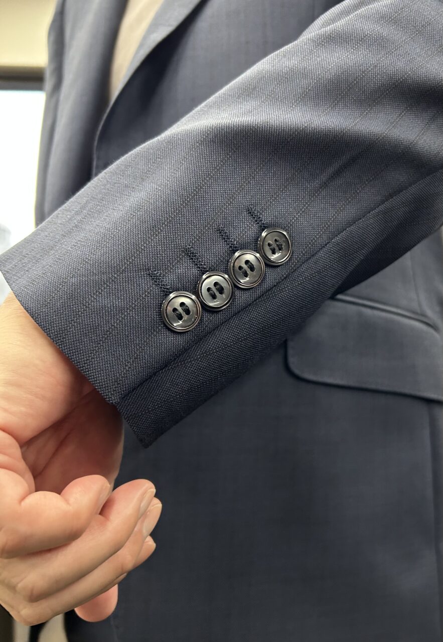 super100’s素材のネイビースーツ 艶のある仕上がりに