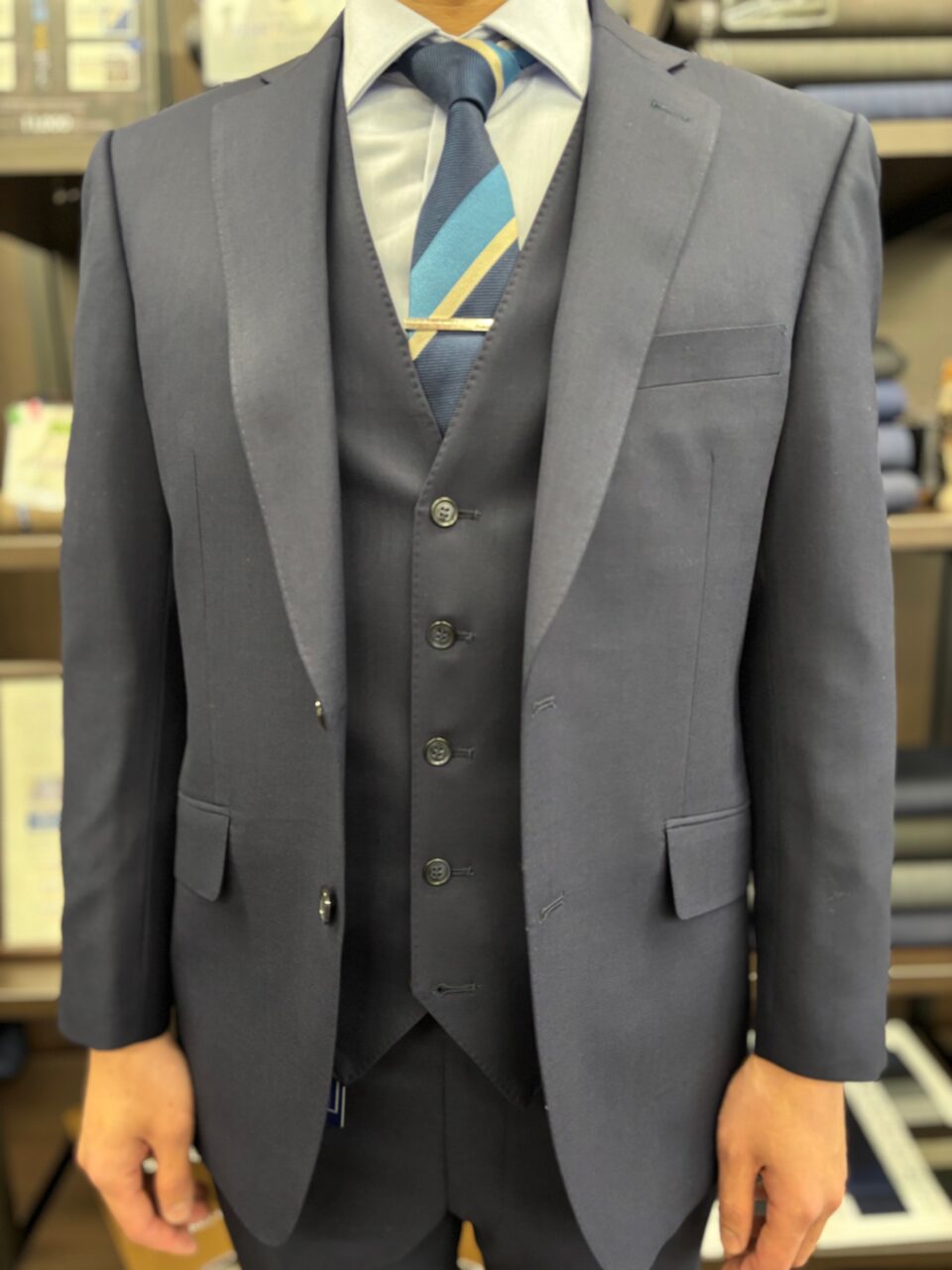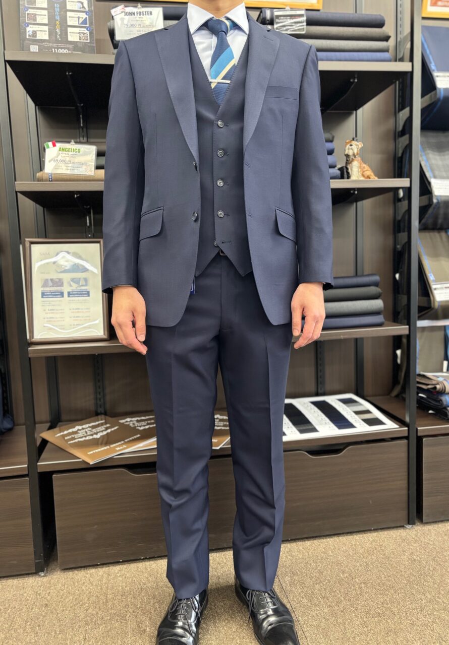 ネイビー無地のスリーピース!