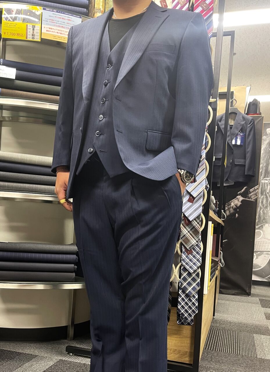 今回、初めてSADAをご利用いただいたT様。今回は当店人気の光沢ナチュラルストレッチ素材でオーダースーツをご注文いただきました。今回は上下の寸法だけではなく、上下のバランスに注意しながら、採寸させていただきました。結果、適度なゆとりをとりながら、身体に沿った美しいシルエットのオーダースーツが仕上がりました。