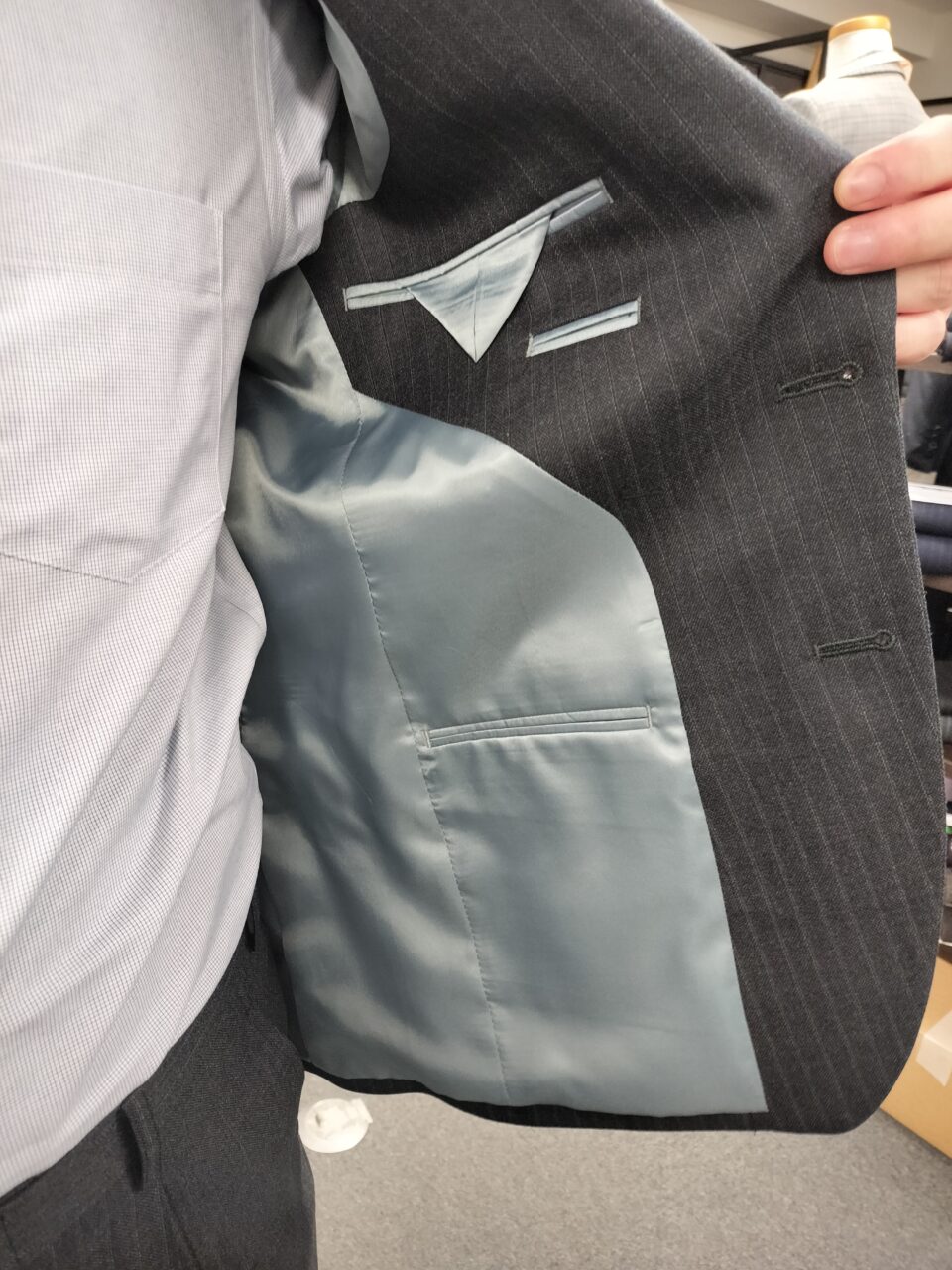 裏地は明るめグレーをお付けになられ、生地とも相性がいいです。