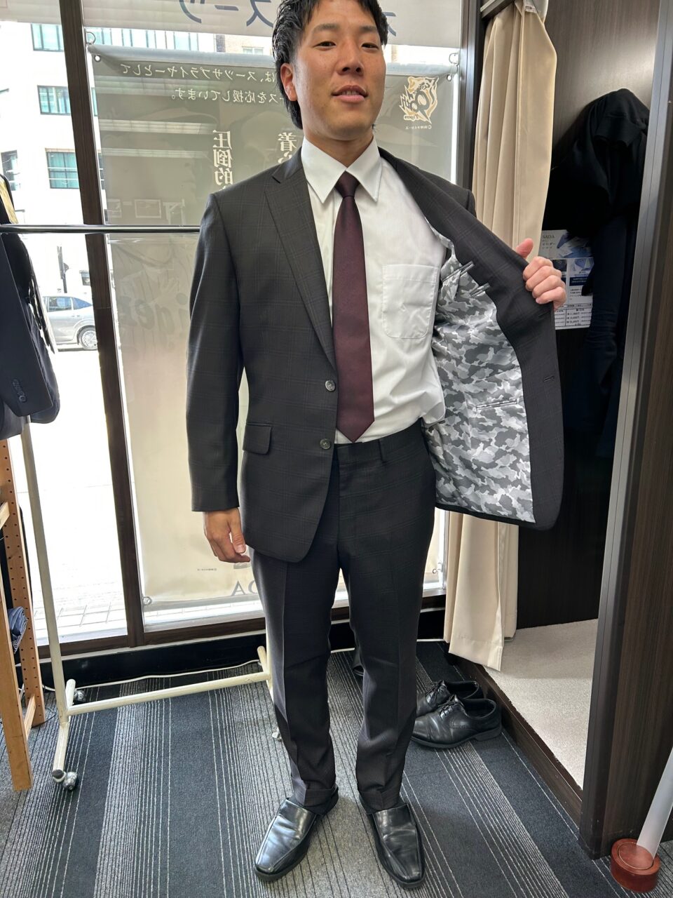 ON/OFFイケる素敵なセンスの男前スーツ オーダースーツSADA 大阪谷町店 投稿日 2026年1月17日 NEW! 最終更新日 2026年1月17日 2ボタンシングルスーツ 生地素材 ・素材名 エレガンス ・色 茶 ・柄 ウインドーペーン ・シーズン 秋冬 ・生地番号 7-6844 裏地 ・素材名 オシャレ裏地 ・色 シルバー ・柄 迷彩 ボタン ・素材 シェル ・色 シルバー オプションその他 ・PP加工 担当スタイリスト