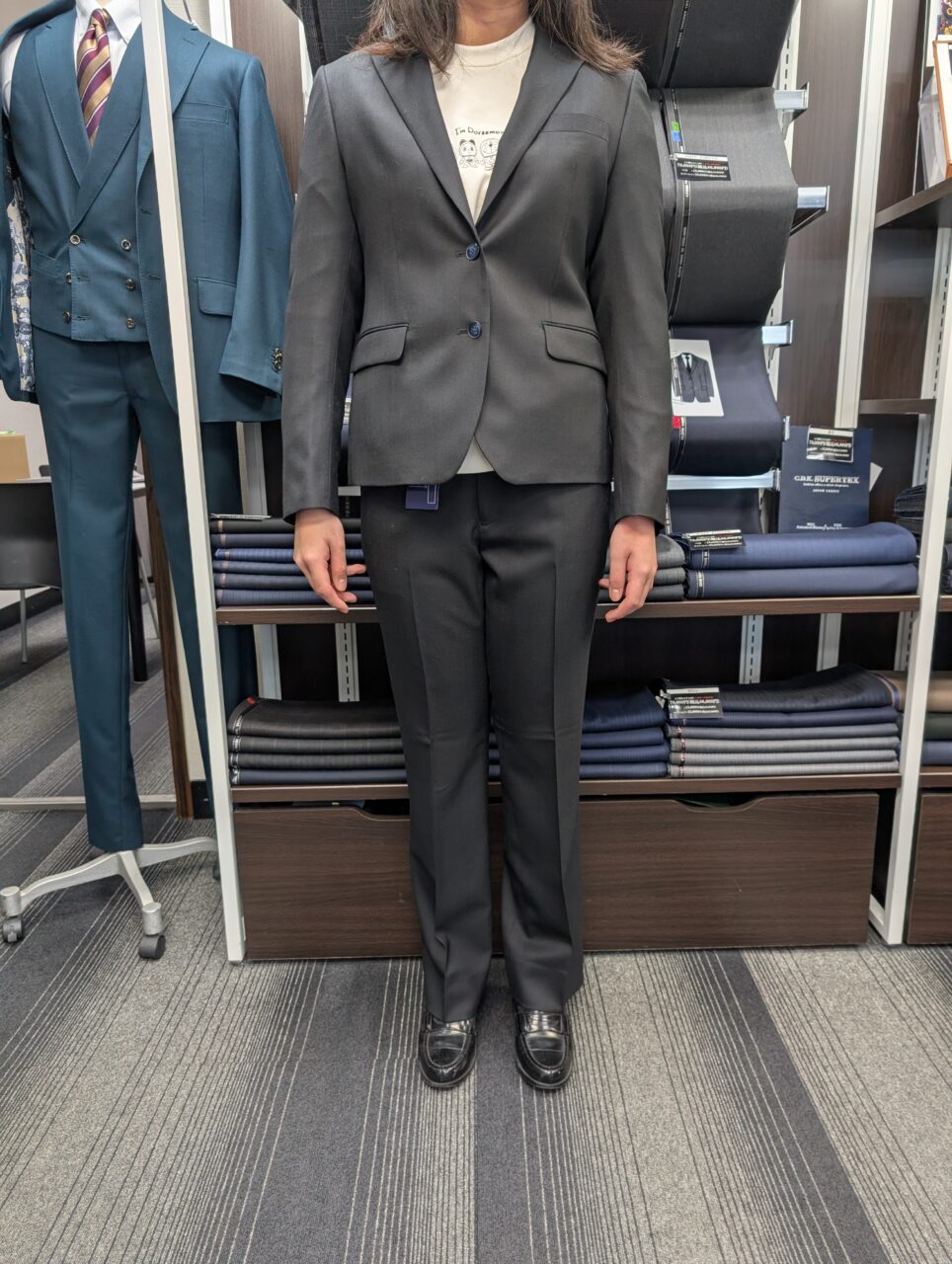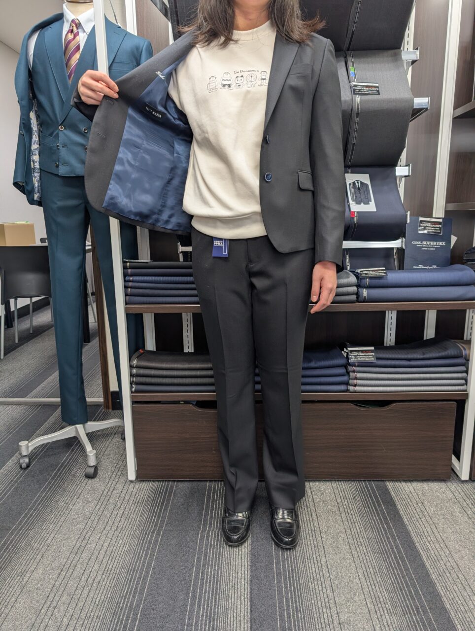 スッキリとしたシルエットでフレッシュに! オーダースーツSADA 大阪谷町店 投稿日 2026年1月24日 NEW! 最終更新日 2026年1月24日 2ボタンシングルスーツ 生地素材 ・素材名 フォルテ ・色 クロ ・柄 ムジ ・シーズン 秋冬 ・生地番号 7-6541 裏地 ・素材名 キュプラ100% ・色 ブルー ・柄 ムジ ボタン ・素材 セリエ ・色 ブルー オプションその他 ・PP加工 担当スタイリスト