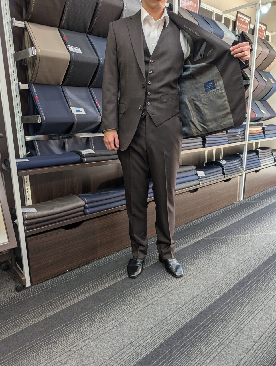 品を漂わせ、お洒落さを咲かせるスーツ オーダースーツSADA 大阪谷町店 投稿日 2026年1月26日 NEW! 最終更新日 2026年1月26日 2ボタンシングルスリーピース 生地素材 ・素材名 アンジェリコ ・色 茶 ・柄 チェック ・シーズン 秋冬 ・生地番号 7-6878 裏地 ・素材名 キュプラ100% ・色 ゴールド ・柄 チェス ボタン ・素材 サンダー ・色 茶 オプションその他 ・ハイグレード仕立 ・PP加工 ・6×5ベスト 担当スタイリスト