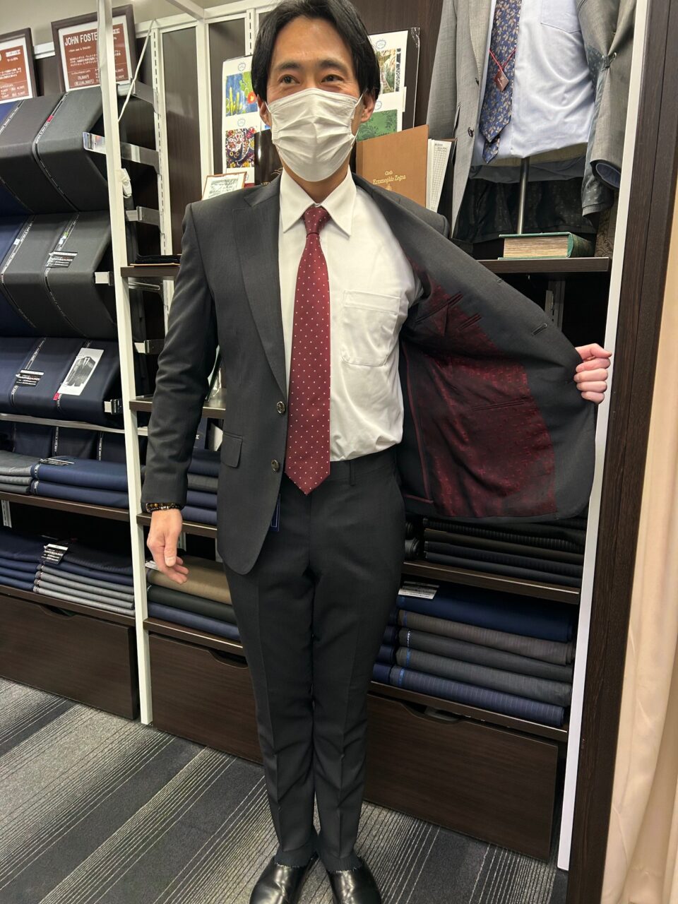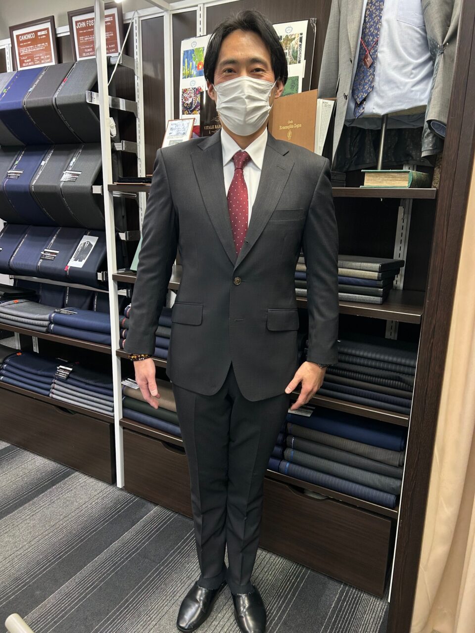 流れるラインの綺麗なスタイリッシュスーツ オーダースーツSADA 大阪谷町店 投稿日 2026年1月27日 NEW! 最終更新日 2026年1月27日 段返り3ボタンシングルスーツ 生地素材 ・素材名 ソリッド ・色 グレー ・柄 ムジ ・シーズン 通年 ・生地番号 8-2197 裏地 ・素材名 キュプラ100% ・色 レッド ・柄 チェス ボタン ・素材 サンダー ・色 茶 オプションその他 ・AMFステッチ ・PP加工 担当スタイリスト