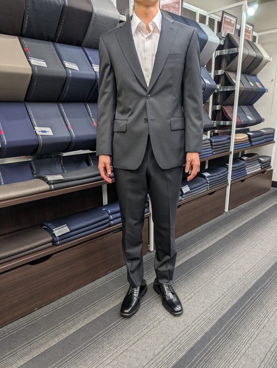 シンプルな黒無地スーツで裏地でワンポイント オーダースーツSADA 大阪谷町店 投稿日 2026年1月31日 NEW! 最終更新日 2026年1月31日 2ボタンシングルスーツ 生地素材 ・素材名 248 ・色 クロ ・柄 ムジ ・シーズン 秋冬 ・生地番号 7-6561 裏地 ・素材名 Mシリーズ ・色 白 ・柄 ムジ ボタン ・素材 Mシリーズ ・色 クロ オプションその他 担当スタイリスト
