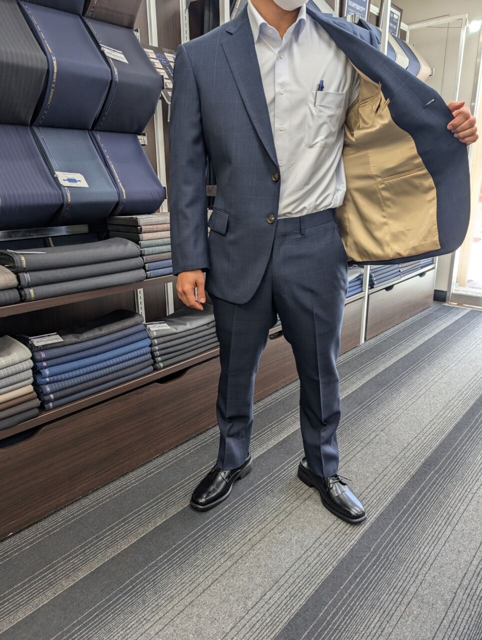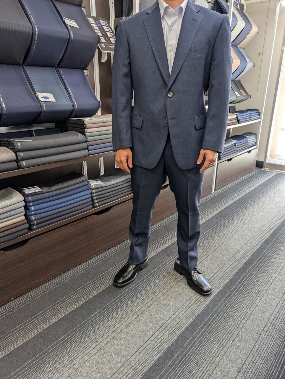 ネイビー色の人気のウインドーペーン柄 オーダースーツSADA 大阪谷町店 投稿日 2026年3月12日 NEW! 最終更新日 2026年3月12日 2ボタンシングルスーツ 生地素材 ・素材名 ヴィヴァーチェ ・色 ネイビー ・柄 チェック ・シーズン 秋冬 ・生地番号 7-5528 裏地 ・素材名 M ・色 ベージュ ・柄 ムジ ボタン ・素材 M ・色 茶 オプションその他 担当スタイリスト