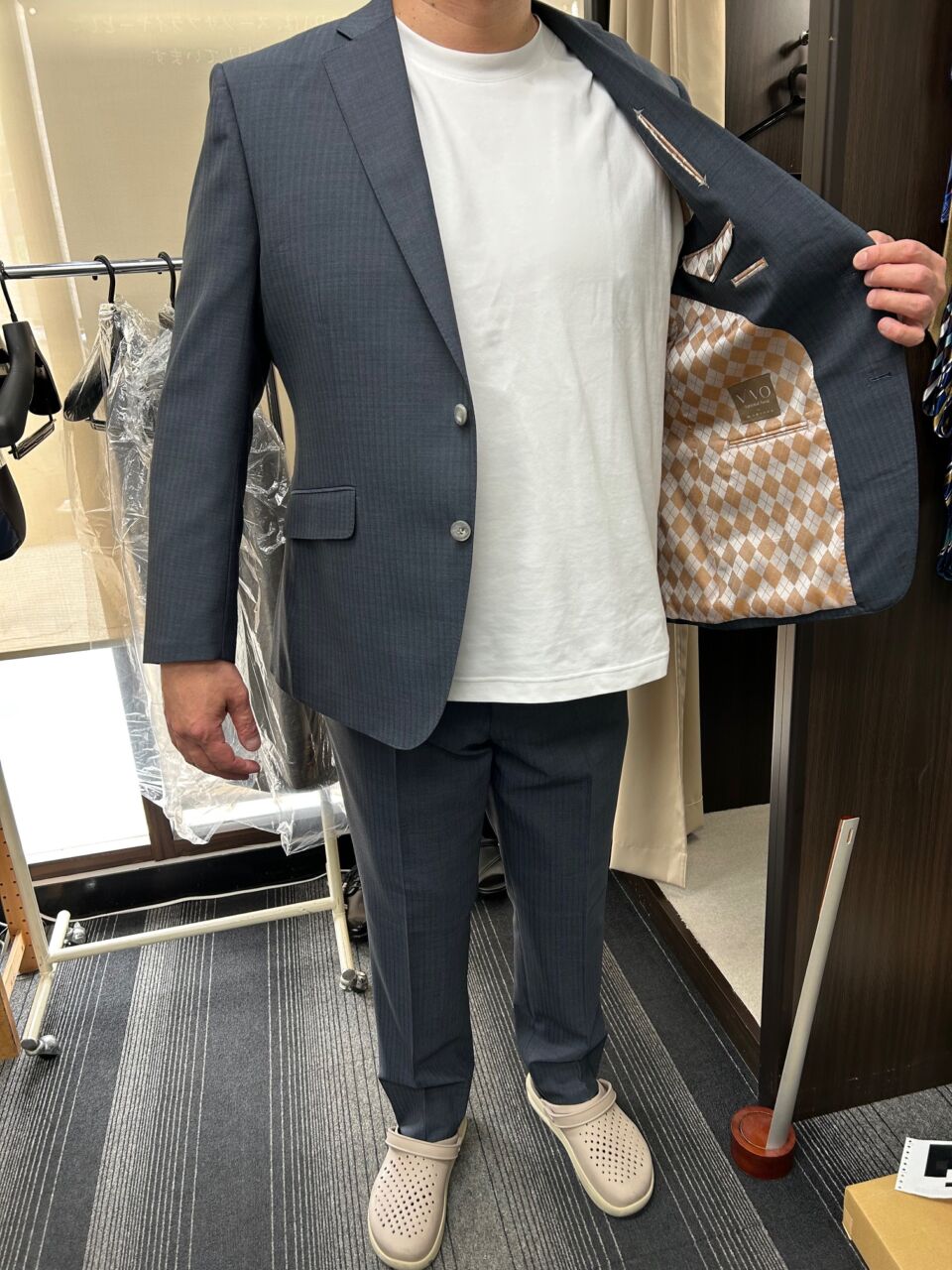 ガッチリとした体型に良く似合うイタリースーツ オーダースーツSADA 大阪谷町店 投稿日 2026年3月14日 NEW! 最終更新日 2026年3月14日 2ボタンシングルスーツ 生地素材 ・素材名 マルラーネ ・色 ブルーグレー ・柄 ストライプ ・シーズン 秋冬 ・生地番号 56460 裏地 ・素材名 ふじやま織 ・色 オレンジ ・柄 アーガイル ボタン ・素材 セリエ ・色 ライトグレー オプションその他 ・ハイグレード仕立 ・PP加工 担当スタイリスト