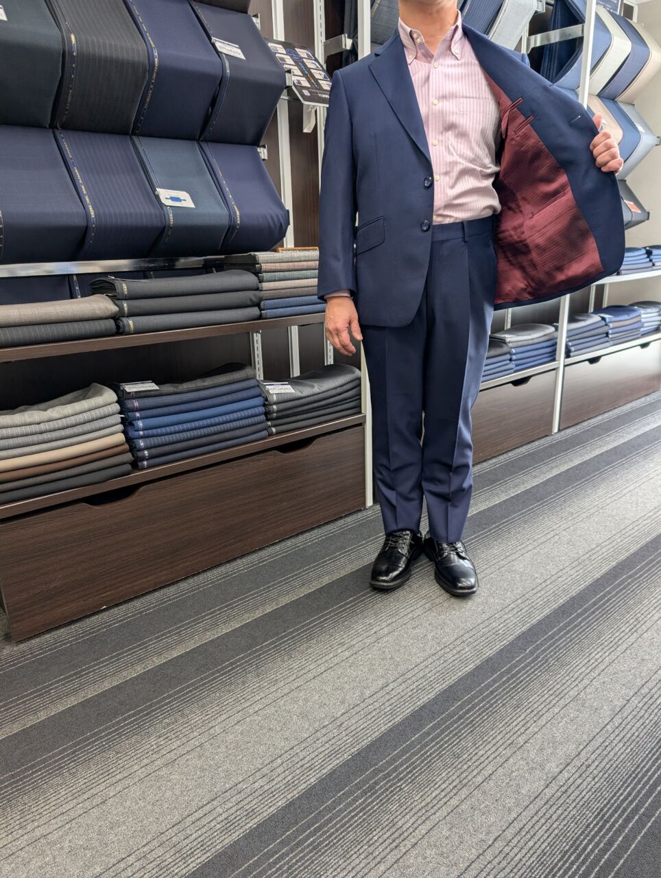 エレガンス。その名の通り高級感を感じるスーツ オーダースーツSADA 大阪谷町店 投稿日 2026年3月20日 NEW! 最終更新日 2026年3月20日 2ボタンシングルスーツ 生地素材 ・素材名 エレガンス ・色 コン ・柄 ムジ ・シーズン 秋冬 ・生地番号 7-6832 裏地 ・素材名 キュプラ100% ・色 エンジ ・柄 ドビー ボタン ・素材 オーバル ・色 コン オプションその他 ・PP加工 ・AMFステッチ 担当スタイリスト