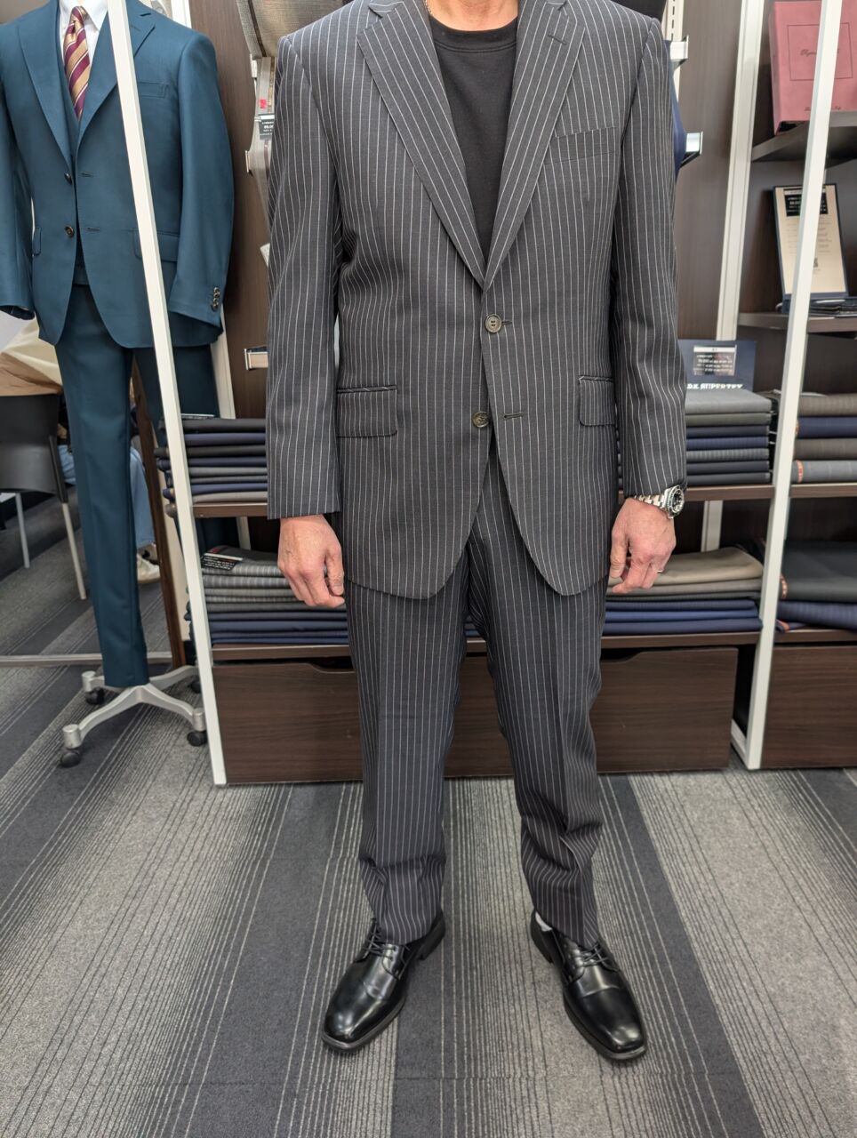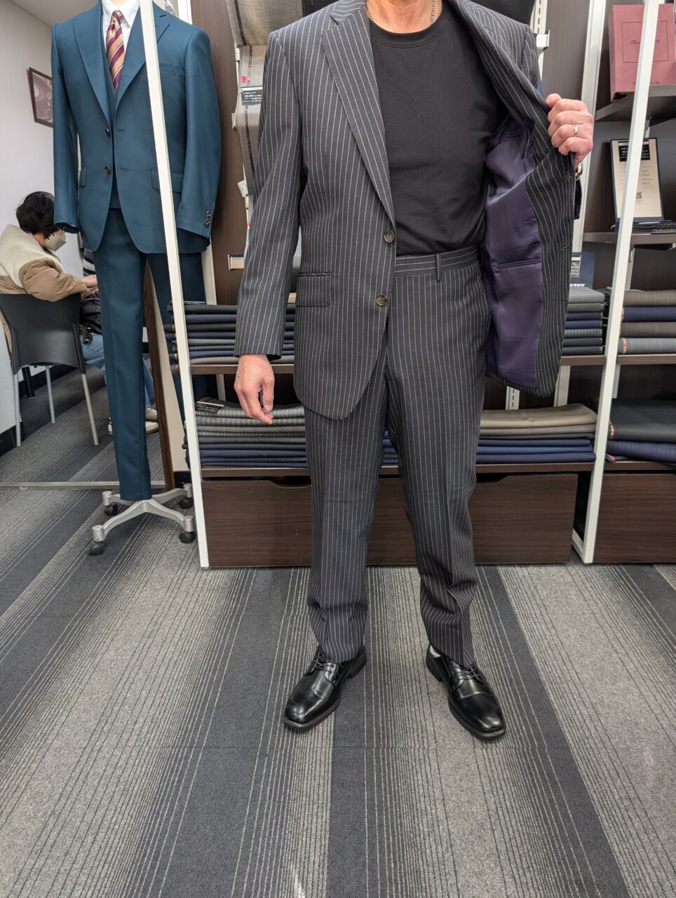 ハッキリしたストライプで男らしさ更にアップ オーダースーツSADA 大阪谷町店 投稿日 2026年3月24日 NEW! 最終更新日 2026年3月24日 2ボタンシングルスーツ 生地素材 ・素材名 ヴィバーチェ ・色 グレー ・柄 ストライプ ・シーズン 秋冬 ・生地番号5-9109 裏地 ・素材名 M ・色 パープル ・柄 ムジ ボタン ・素材 M ・色 こげ茶 オプションその他 ・AMFステッチ 担当スタイリスト