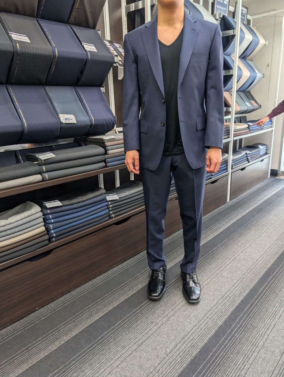 光沢の有る上品なネイビースーツ オーダースーツSADA 大阪谷町店 投稿日 2026年3月30日 NEW! 最終更新日 2026年3月30日 2ボタンシングルスーツ 生地素材 ・素材名 エレガンス ・色 ネイビ ・柄 織り柄 ・シーズン 春夏 ・生地番号 7-2838 裏地 ・素材名 キュプラ100% ・色 レッド ・柄 チェス ボタン ・素材 オーバル ・色 グレー オプションその他 ・PP加工 担当スタイリスト