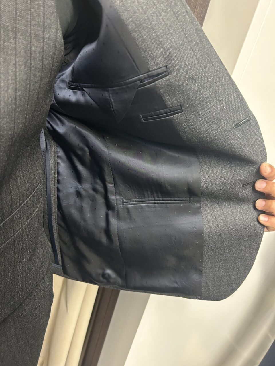 ボタンも有料のものからお選びいただき、茶色のボタンがグレーのスーツととても相性がよく、