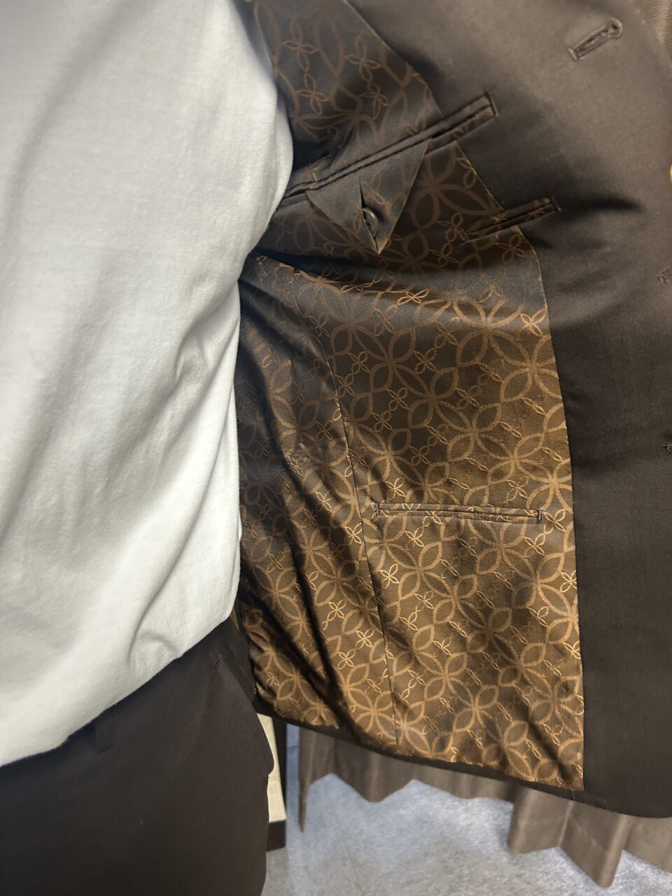 裏地もこだわって選んでいただき、ブラウンで四つ葉の柄の裏地にしていただきました。