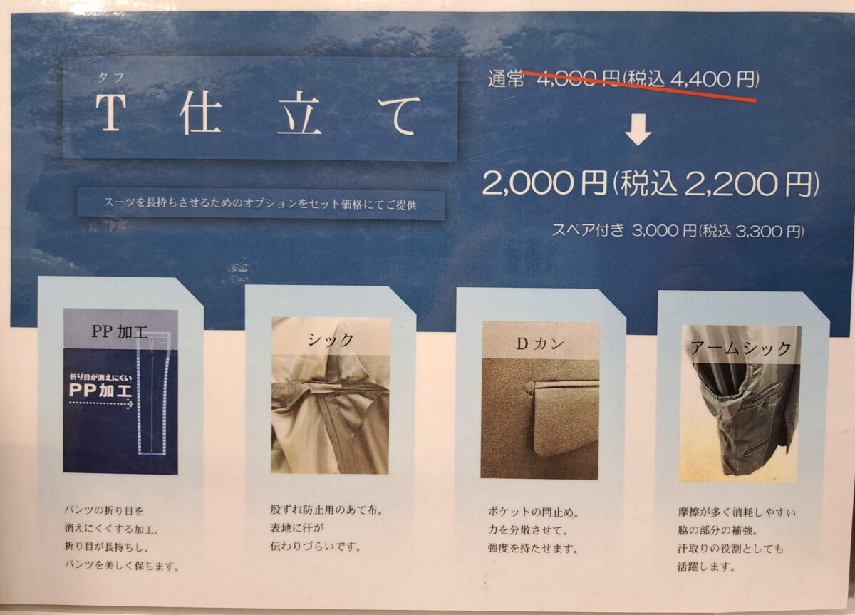 こちらはスーツを長持ちさせるための4つのオプションがセットになったプランで、