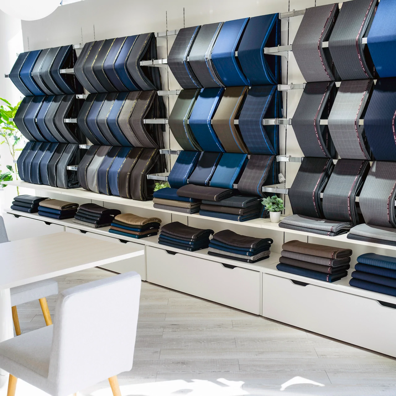 ◎スーツお仕立ての際、生地決めやデザイン決め、採寸からお会計までに1時間ほどお時間を頂いております。