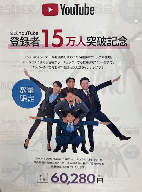 オーダースーツSADAでは公式Youtubeチャンネルにて日々スーツの豆知識などの動画をアップしており、Youtubeを見てSADAにご来店いただくなどありがたいことに大変ご好評をいただいております。