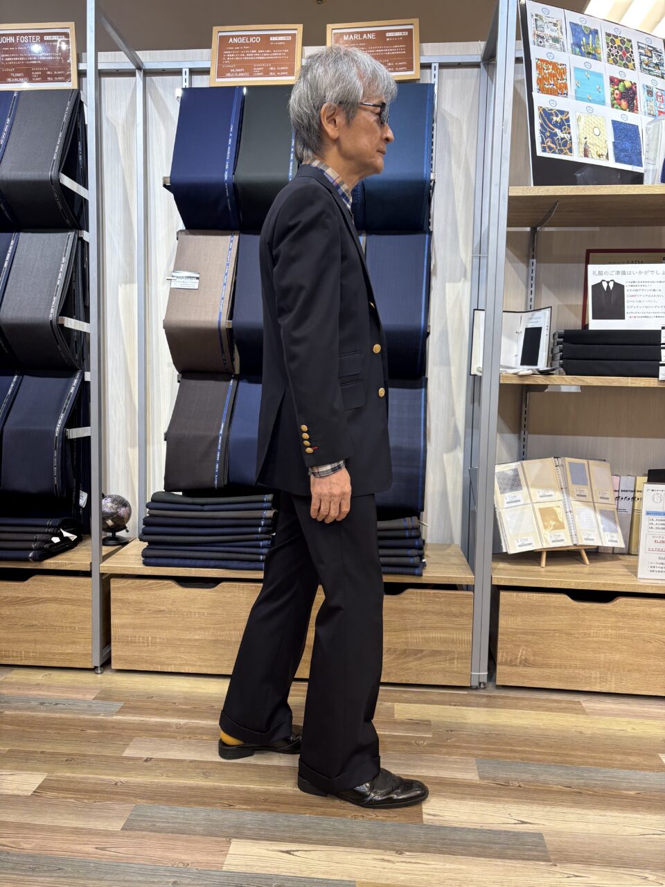 前回のスーツコレクションで掲載されていたフォーマルスーツとご一緒にネイビースーツもお仕立ていただきました。