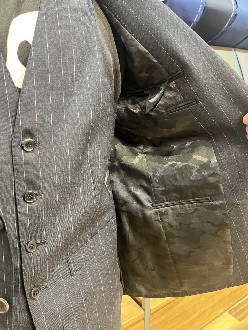 裏地はシャドーのカモフラ柄でオリジナリティのある仕上がりです。