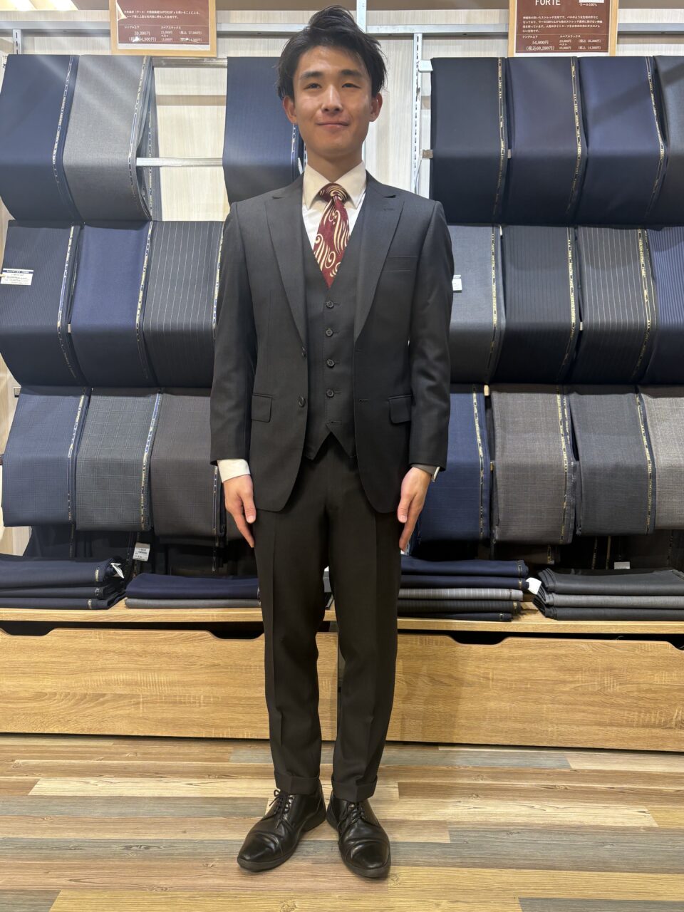 今回ご紹介するのはチャコールグレーのスリーピーススーツをお仕立ていただいたお客様です。