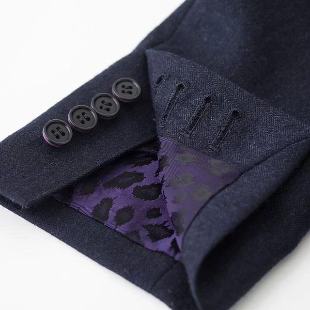 通常の飾りボタンとは異なり、袖元を開けてボタンの留め外しを可能にします。本格派オーダーらしい高級感が漂います。