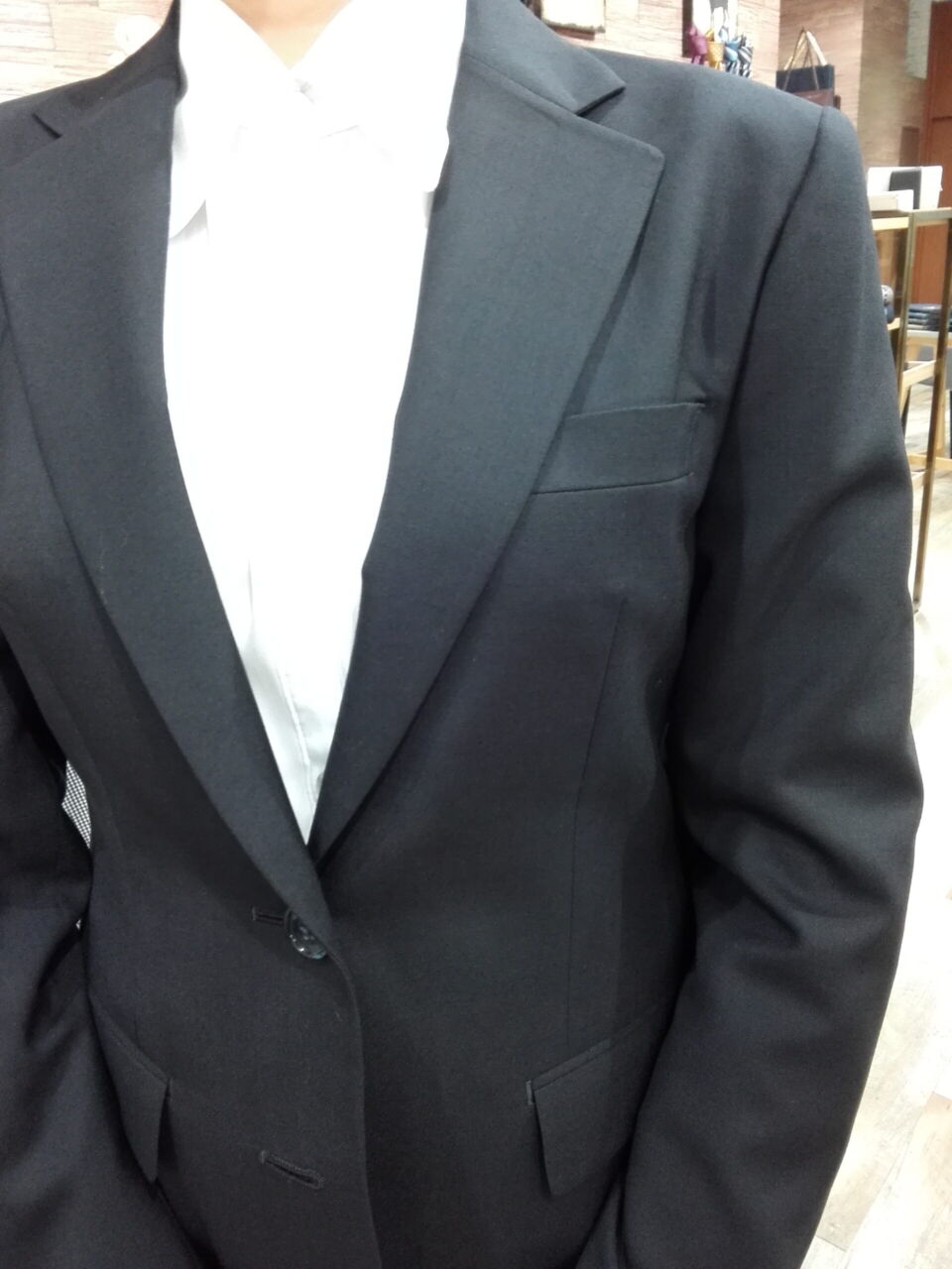 スーツの特徴:就活用にスカートとパンツスタイルでお作り頂きました