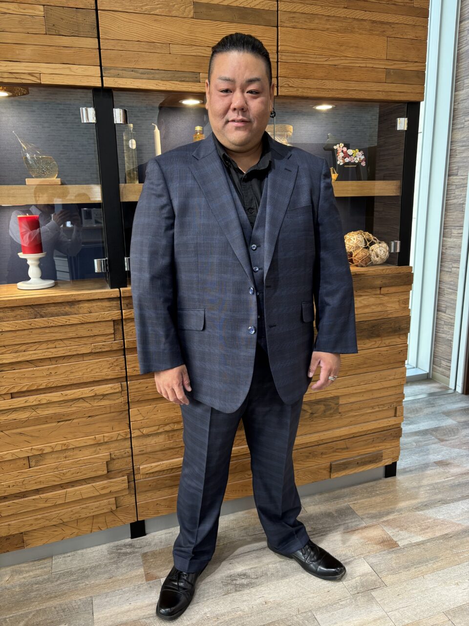 体格の良い方でもスッキリ見えるシルエット H.K様 オーダースーツSADA 札幌駅前通店 投稿日 2025年10月7日 NEW! 最終更新日 2025年10月7日 こんにちは!札幌駅前通店です(*´▽`*) 本日もお客様の素敵なスーツをご紹介いたします。 2ボタン シングルスーツ 生地素材 ウール100% イタリー製マルラーネ ネイビーチェック柄 秋冬生地 7-9847 裏地 キュプラ100% チェス柄 ボルドー SU674 ボタン オーバル釦 ブルーK55 オプションその他 担当スタイリスト 高橋