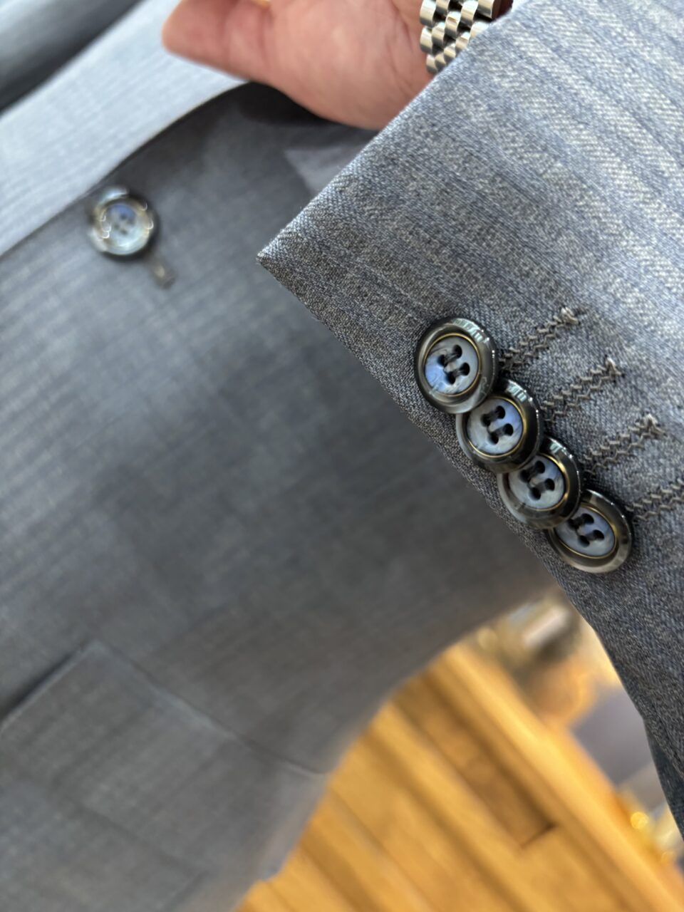 艶感のあるスキャバルのシャドーストライプは角度によってより綺麗に見える1着 M.K様 オーダースーツSADA 札幌駅前通店 投稿日 2025年10月14日 NEW! 最終更新日 2025年10月14日 こんにちは!札幌駅前通店です(*^-^*) 本日もお客様の素敵なスーツをご紹介いたします。 2ボタン シングルスーツ 生地素材 ウール100% 英国製スキャバル グレー シャドーストライプ オールシーズン素材 403636 裏地 キュプラ100% シルバーグレー・ペイズリー柄 SU640 ボタン オーバル釦 イタリー製 グレー K04 オプションその他 ハイグレード仕立 担当スタイリスト 梅内